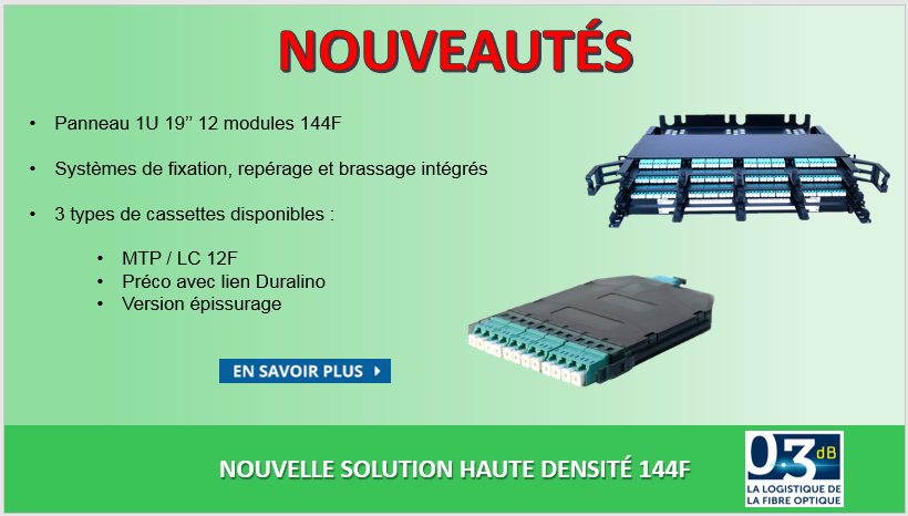 Fondée en Décembre 2003, la société 0.3dB La Logistique de la Fibre Optique (SAS au capital de 100 000 €) est spécialisée dans la distribution de produits Fibre Optique.